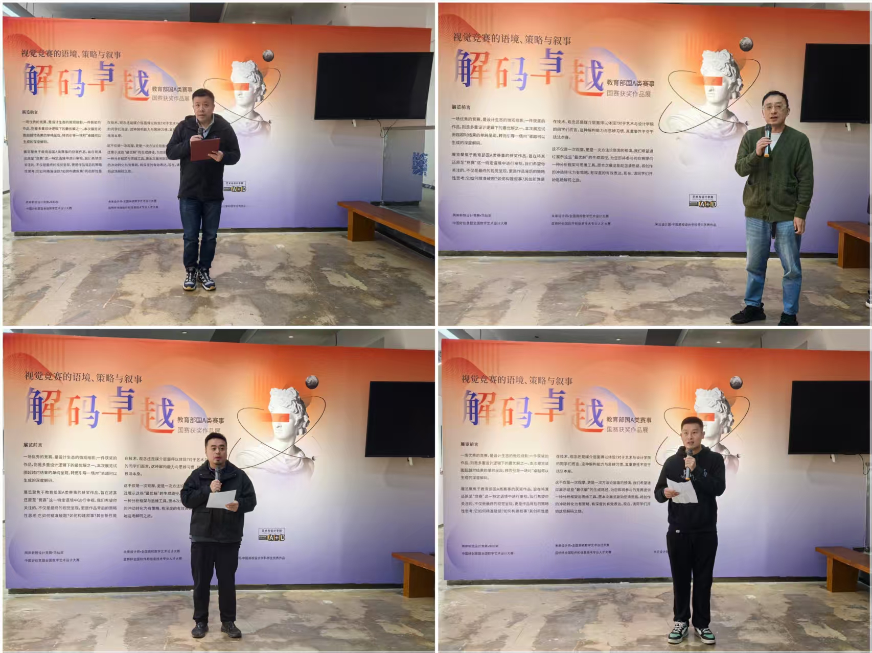 10月21日,创新设计学院教育部国A类赛事国赛获奖作品展在学院一楼美术馆开幕。学院党委书记刘元文、院长石元伍、副院长曹凯、学院党委副书记吴双、竞赛办主任田原、系部主任代表、专业教师代表、辅导员和学生代表参加活动,曹凯主持开幕式。