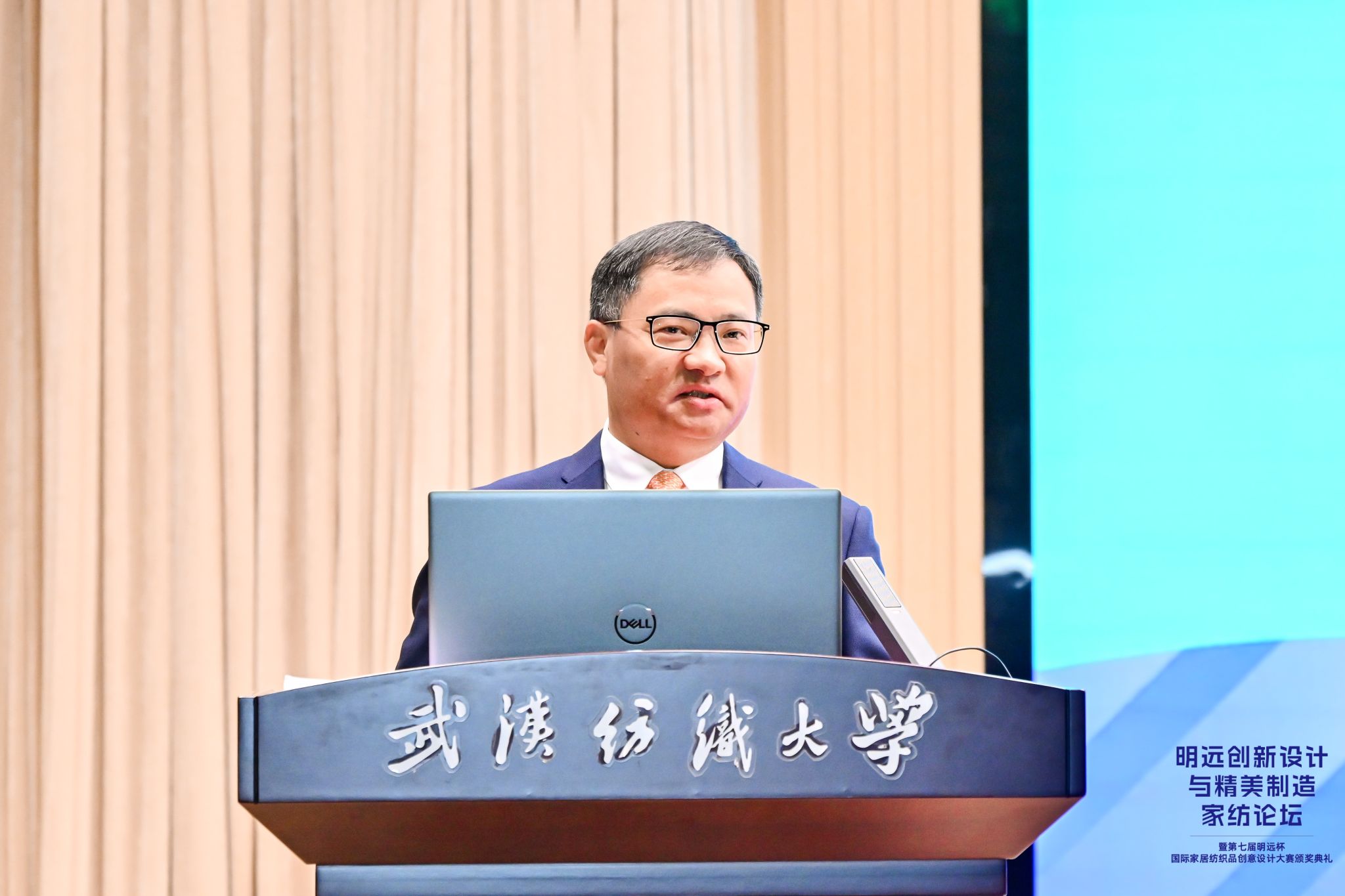 “明远杯”国际家居纺织品创意设计大赛创始人、明远创意生活科技股份有限公司董事长陈义忠进行了主题以“创新让美好触手可及,文化让目标如约而至”的主旨演讲,回顾了公司发展历程,展望了未来前景与目标。谈到“明远杯”他认为,这不仅是一项设计竞赛,更是行业发展的“加速器”和“孵化器”,希望大赛在推动行业创新、促进产教融合、传承文化与技艺、培养行业人才、引领消费趋势方面发挥积极作用,推动中国家纺行业从“制造”向“创造”转型,实现高质量发展。