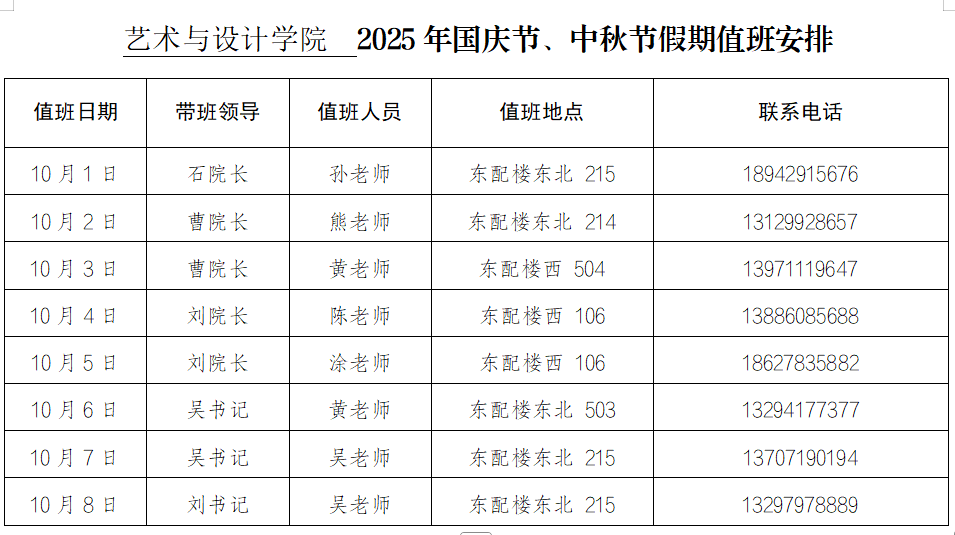 必赢76net线路官网2025年国庆节、中秋节假期值班安排