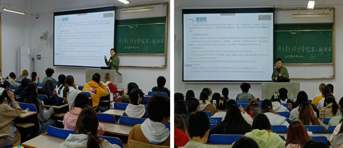 为深化设计人才培养内涵,提升青年学生的专业能力、竞赛水平与综合素养。10月28日,创新设计学院在南湖校区尚知楼T109教室开展第二期“赛场炼真金·设计育新人”主题团课。本次团课由学院教师张雷主讲,2025级全体新生及新发展团员参加培训。