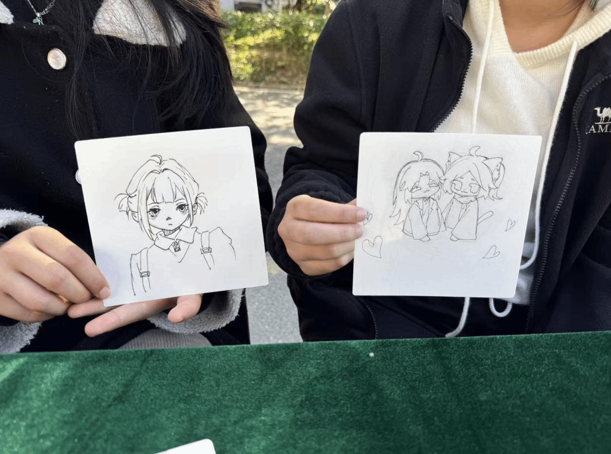 在活动现场,同学们设置了专属创作区域,以“留存温暖”为主旨,为参与师生提供简笔卡通画像绘制服务,定制立冬专属纪念画像,吸引着路过的同学们频频驻足观赏。