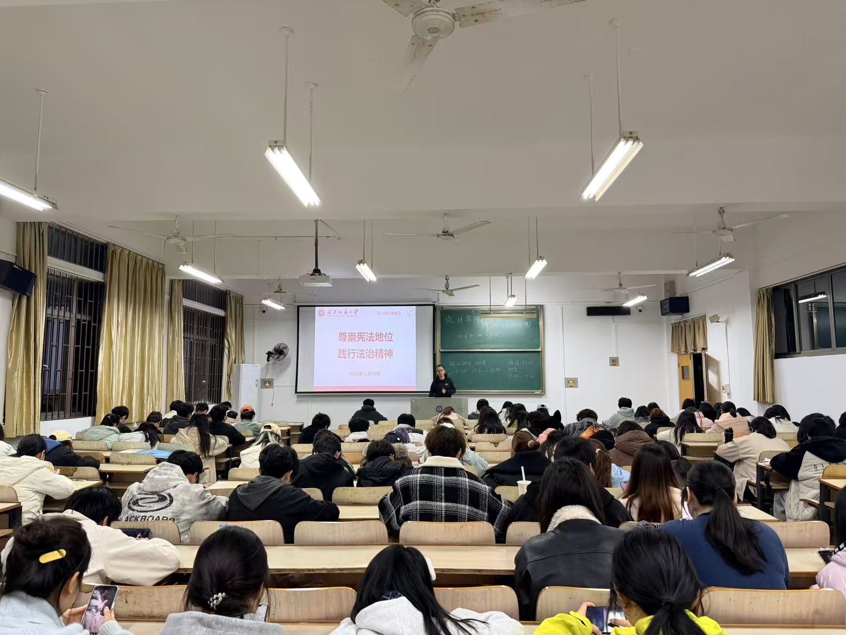 为深入学习宣传宪法知识,弘扬社会主义法治精神,引导学生树立正确的法治观念,创新设计学院于11月30日召开“尊崇宪法地位 践行法治精神”主题班会。本次班会由各年级班主任、辅导员主持,全体学生积极参与。