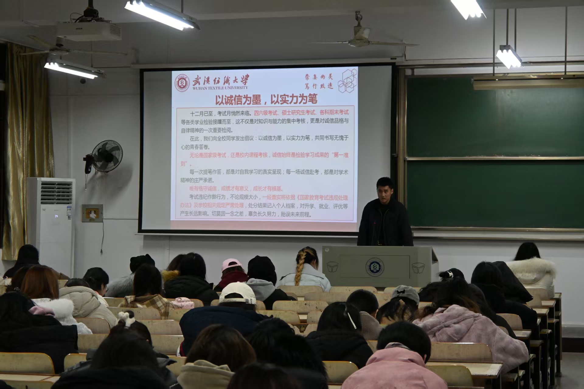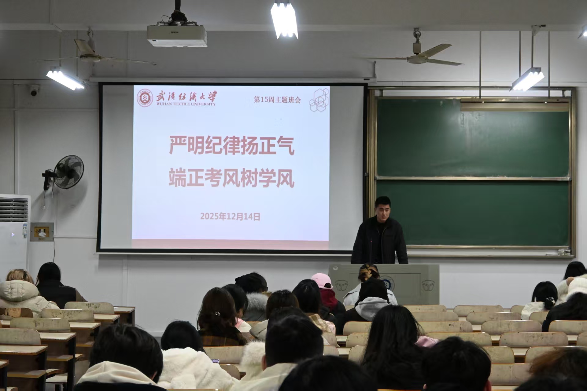 12月14日晚,创新设计学院开展“严明纪律扬正气,端正考风树学风”主题班会。各年级辅导员、各班班主任主持班会,在校本科生参加本次班会。