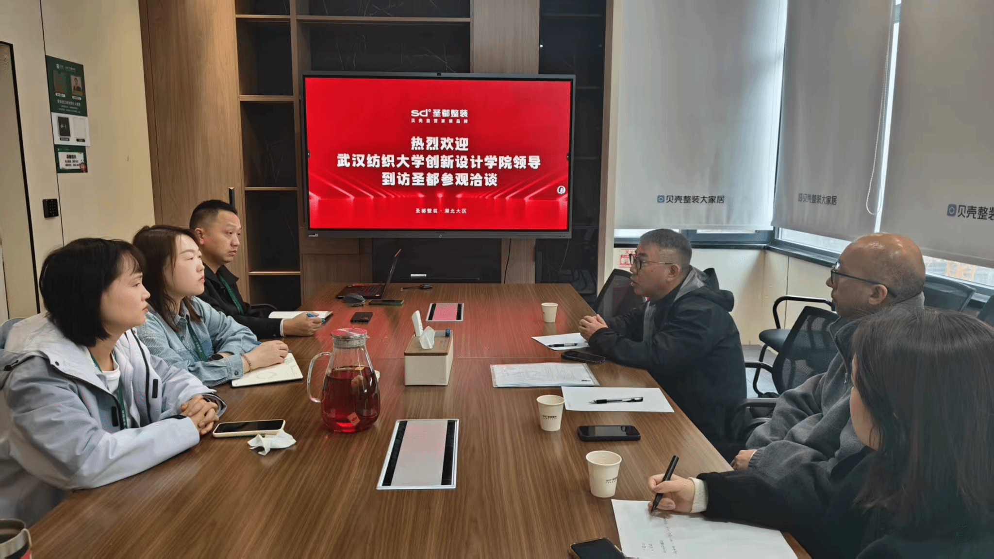圣都家居装饰有限公司负责人龙剑对邱杰一行表示热烈欢迎,学院一行先参观了企业设计展示中心等核心区域,企业负责人介绍了圣都家居的发展概况、创新成果及人才需求。双方就家居设计行业趋势、技术革新及人才标准展开深入交流,教师代表结合教学对企业设计案例提出专业看法。